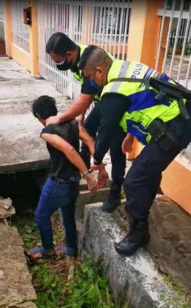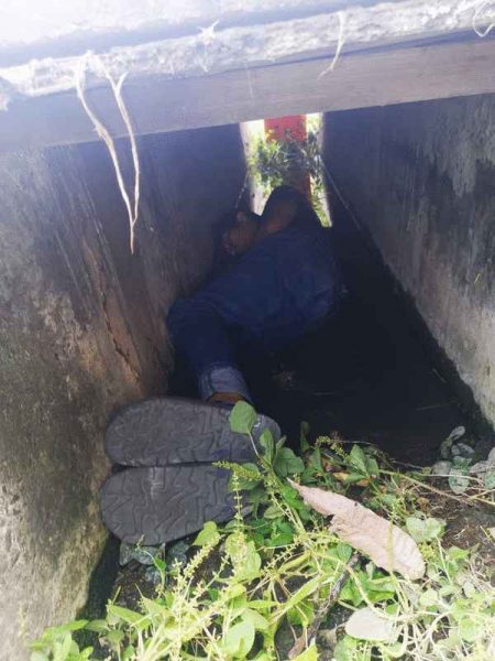 (亚庇18日讯)毛贼光天化日偷煤气桶被发现,拔腿就跑并钻进沟渠底下,被细心的民众找到报警捉贼。