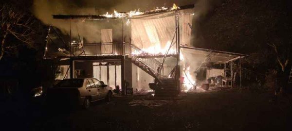 火患造成该半永久性房屋90%烧毁,另有一辆宝腾国产车皮被烧毁30%。