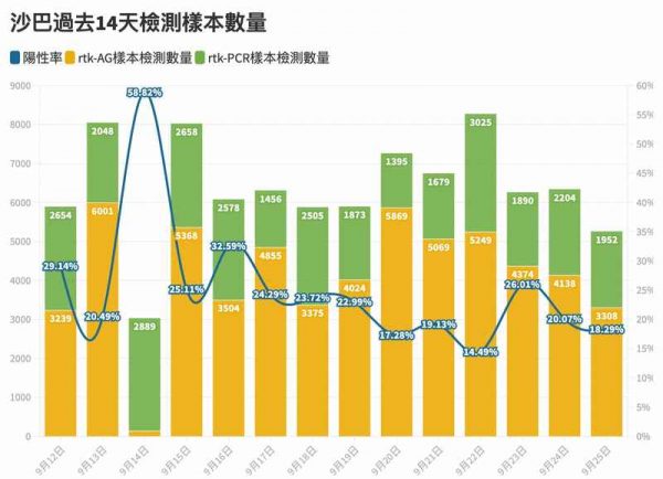 在8月中旬至9月初旬期间,沙因疫情飙升,需要检测的样本也随之增加,导致政府实验室无法负荷,新例也频频出现众多积压病例。