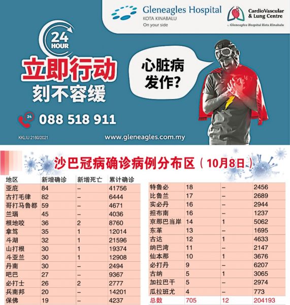 居在亚庇和古打毛律之后的是哥打马鲁都,新增59宗;接着是兰瑙45宗,根地咬36宗。