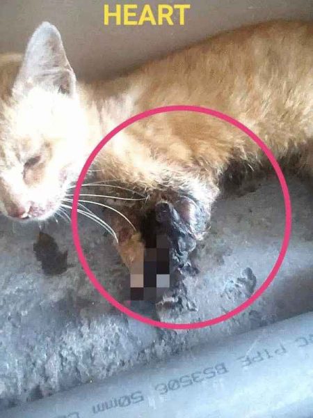 爱心动物拯救队(HEART Helping Animals Rescue Team)在本月3日接获爱护动物者爱莎的投报,指一隻身受重伤的流浪猫躺在孟加达一家快餐店的楼梯口。
