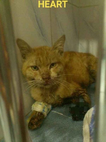 被起名为特比(Tabby)的公猫经兽医检查之后,确定必须进行截肢手术,才能保住它的命;截肢之后,特比需要长时间治疗才能够完全康復。