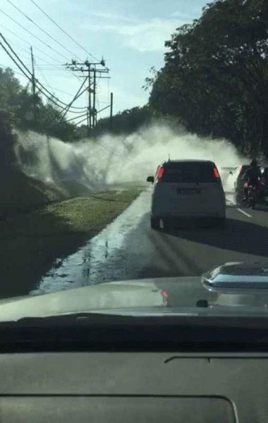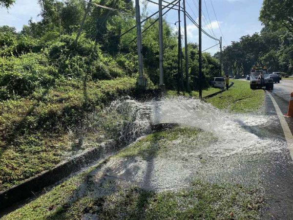 直至今早约九时许,水务局才派员到现场关闭水阀抢修。由于水供关闭,4至6哩多个住宅区的水供受影响,包括千禧花园、富林园、冠华园、金乐园及附近一带地区。