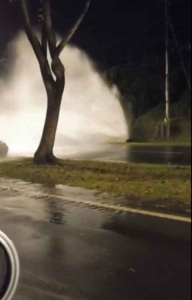水管遭撞爆 水柱数呎高 5哩路旁现“喷泉”