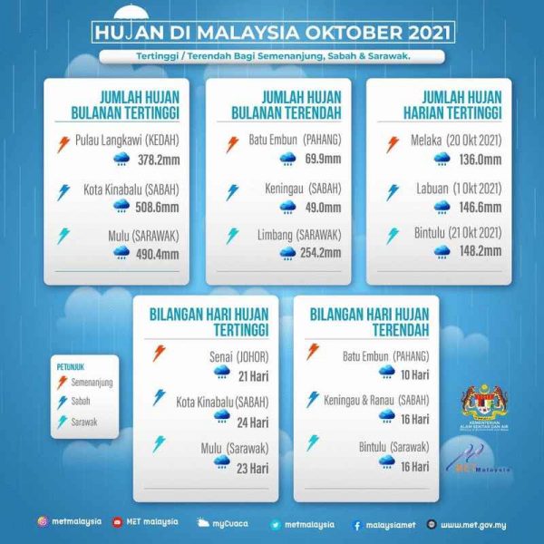 当局指出,纳闽在10月1日当天的降雨量录得146.6毫米,成为沙巴在上个月单日最高降雨量的地区。