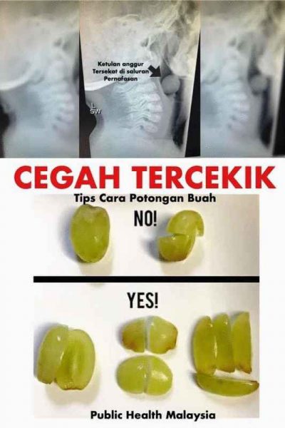 大马公共健康(Public Health Malaysia)在脸书专页提醒家长,不要以为可以把稍微捏扁的葡萄喂给孩子吃,正确做法是把葡萄切半或更小块。