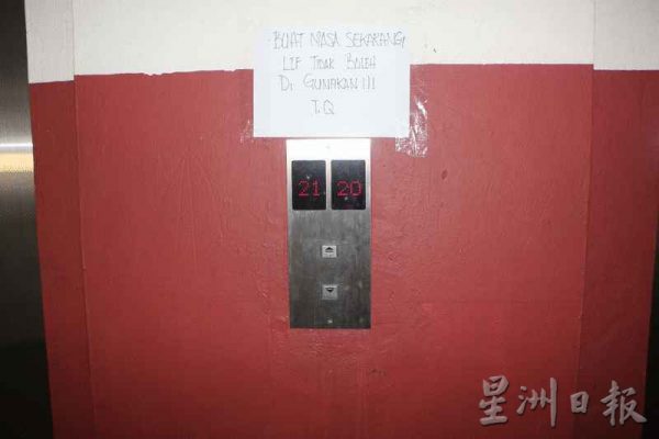 (山打根20日讯)山打根市议会大厦的4个电梯故障长达1个月,苦了高楼层办事处员工及停车的民众。
