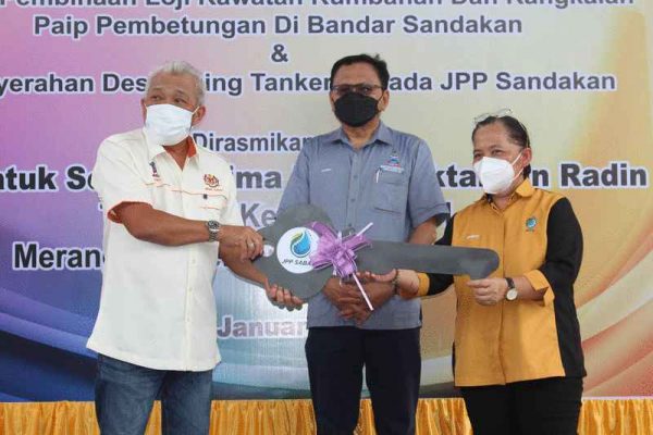 此外,邦莫达也主持一项移交除泥槽车(desludging tanker)模拟钥匙予沙巴排污局的仪式,由总监沙巴排污局总监甄妮芙彼得代为接收。