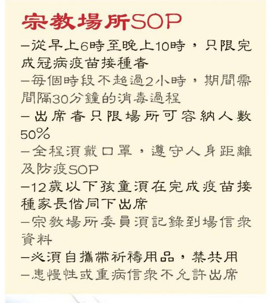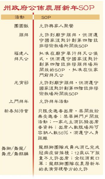 期间民众也允许到宗教场所祈福、年初八进行拜天公活动,拜年活动也不设限,惟须做好防疫SOP。