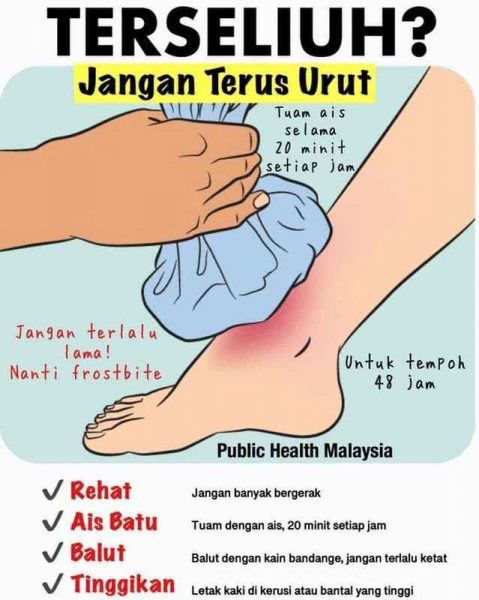 “大马公共健康”(Public Health Malaysia)在脸书专页指出,一旦扭到脚踝, 牢记RICE四个步骤。