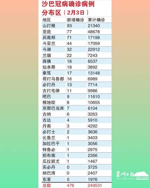 沙巴前日(1日)及昨日(2日)分别新增490宗和446宗冠病确诊病例,今日新增476宗,全州累计确诊病例达24万9531宗,迫近25万宗大关。