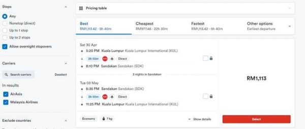 (山打根11日讯)在佳节前夕,吉隆坡往返山打根的航班机票价格飙涨至1000令吉以上。