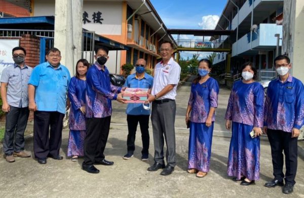 温国华表示,董联会赠送教师节蛋糕予2校,感谢教师尽忠职守运行任务,并表扬他们为华教事业作出贡献。