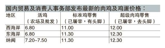 沙巴肉鸡顶价每公斤12.30 西海岸稍便宜30仙