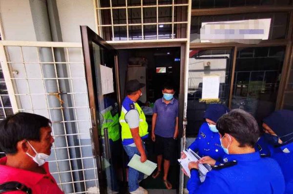 市政厅执法队向触犯反垃圾条例的渔船公司开罚。(市政厅提供)