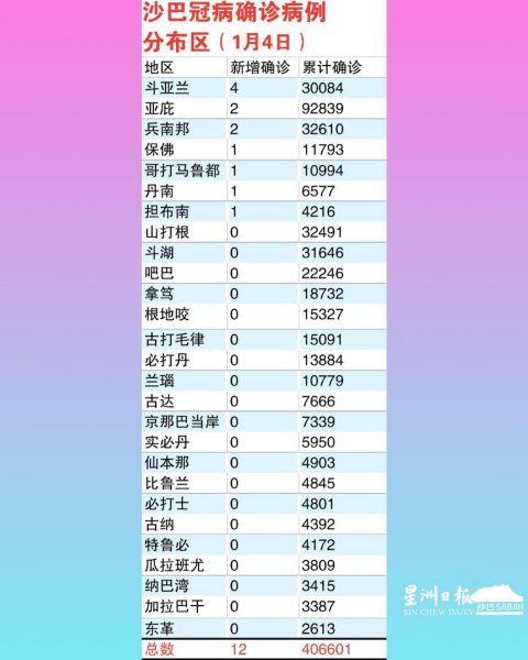 有20个县区没有通报新增病例,另沙巴今日的12宗病例中,有2宗属于重症病例,10宗属轻微病例。