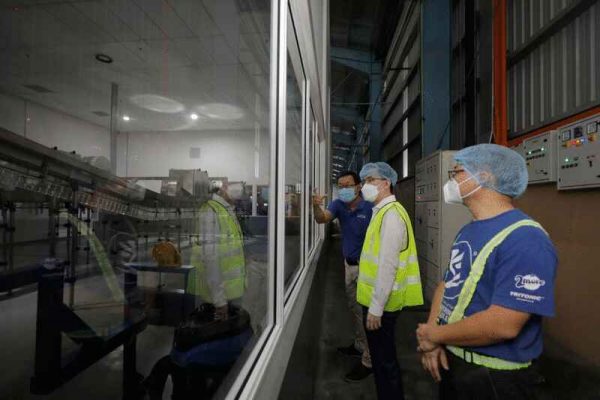 冯晋哲今日走访了受缺水影响的生命泉源有限公司,生产饮用水的这家公司的生产操作大受影响,厂方被迫向外购水以维持生产。
