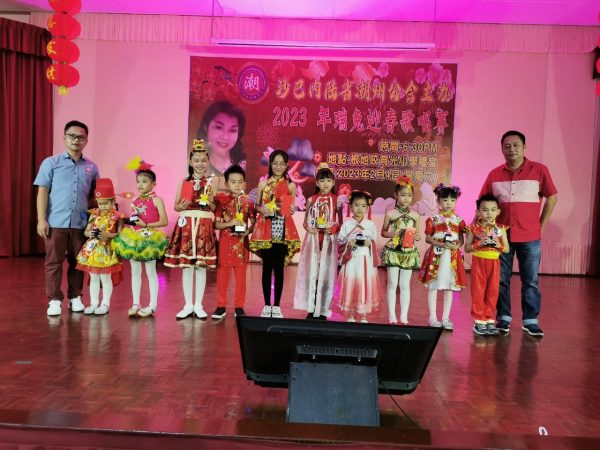 (根地咬6日讯)沙巴州内陆省潮州公会于2月4日晚在育光学校礼堂举行“2023癸卯年瑞兔迎春歌唱赛”,热心公益善士赖雪颖受邀担任主宾及主持开幕。