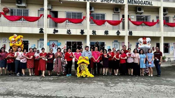 (亚庇9日讯)孟加达善牧小学日前举行癸卯年新春联欢会,全体师生和董家协成员同庆新春佳节,传承中华文化。