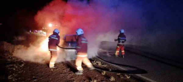 (古达10日讯)轿车在行驶途中,车头引擎突然冒烟燃烧,女司机见状赶紧弃车,逃过一劫。