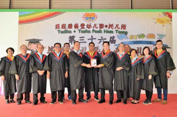 (亚庇12日讯)亚庇碧南堂幼儿园今日举行第36届毕业典礼及结业礼,邀请碧南堂永久名誉顾问拿督陈开德担任主宾。