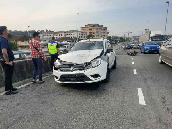 事发时,死者骑著摩托在水塘路直上亿达高架桥路段行驶时,与另一辆取道亿达公路前往甘榜布劳兵南邦的轿车相撞。