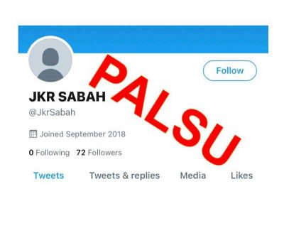 工程局没注册推特帐号 “JKR SABAH” 假的
