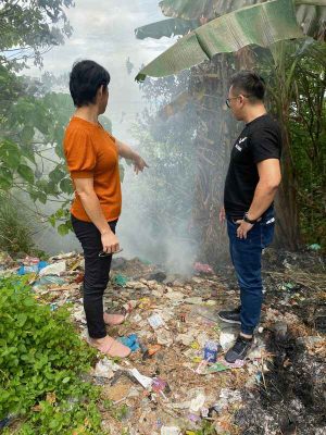 加拉敏丁区州议员邱文正服务团队成员刘见闻和曾秀婷在接获当地居民投诉后,立即前往现场,发现有浓烟,并与居民将火势扑灭。