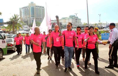 (仙本那21日讯)仙本那火炬行昨早在仙本那海洋旅游渡假中心举行,由马来西亚中华大会堂(大华堂)总会长丹斯里吴添泉主持敲锣开幕,即点燃中华文化圣火仪式,众人逐一拜访赞助人、宝号、仙本那中华商会及育华小学。
