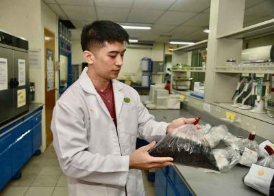 火灾调查实验室化验员准备化验从火灾现场中取回的样本。(沙巴新闻局提供)