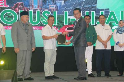 佐津昆沙郎(左二)移交“KKTP I-绿色”宣言文件予山打根市议会。