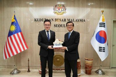 在结束访韩之行前,冯晋哲礼貌拜会我国驻韩国大使拿督林锐仁,并向对方倡议每年在韩国举办一场投资沙巴为主题的商业论坛,让更多潜在投资者看见沙巴。