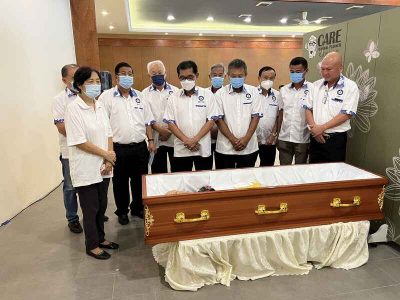 (亚庇29日讯)沙巴暨纳闽客家公会联合会会长拿督吴秀传今天率领理事前往客家世纪殡仪馆,参加副会长已故张志华医生的安息告别仪式,并献上花圈。