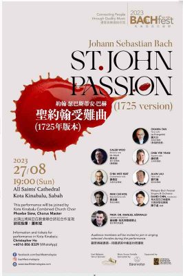 (亚庇30日讯)马来西亚巴赫节(Bachfest Malaysia)团队将于8月27日晚上7时,在亚庇诸圣堂举行《圣约翰受难曲》音乐会。