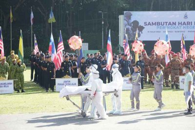 (亚庇31日讯)沙巴州级英雄日庆典今日透过特别默剧表演,重现沙巴过去2年在面对冠病疫情时前线人员辛苦抗疫情景。