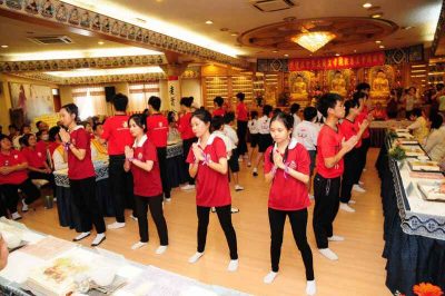 当天下午2时啟建的“孝亲报恩总回向法会”,讽诵三时繫念乙堂,由觉诚法师主法,偕同佛光山东禅寺法师带领150名信众礼佛诵经,祈求阖家平安吉祥,冥阳两利。