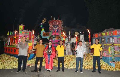 (亚庇31日讯)数百名善信踊跃参加亚庇碧南堂庆讚中元节追荐功德及普度大法会,在主祭拿督陈开德及陪祭率领下,深夜恭送大士爷“火化升天”,为法会写下圆满句号。