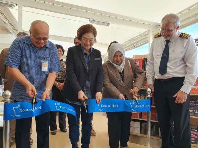 沙巴旅遊、文化及环境部长拿督刘静芝今日代表首席部长拿督哈芝芝为这项海上书展主持剪彩开幕仪式,向“望仆号”再次选择亚庇作为其中一站,表示感谢。