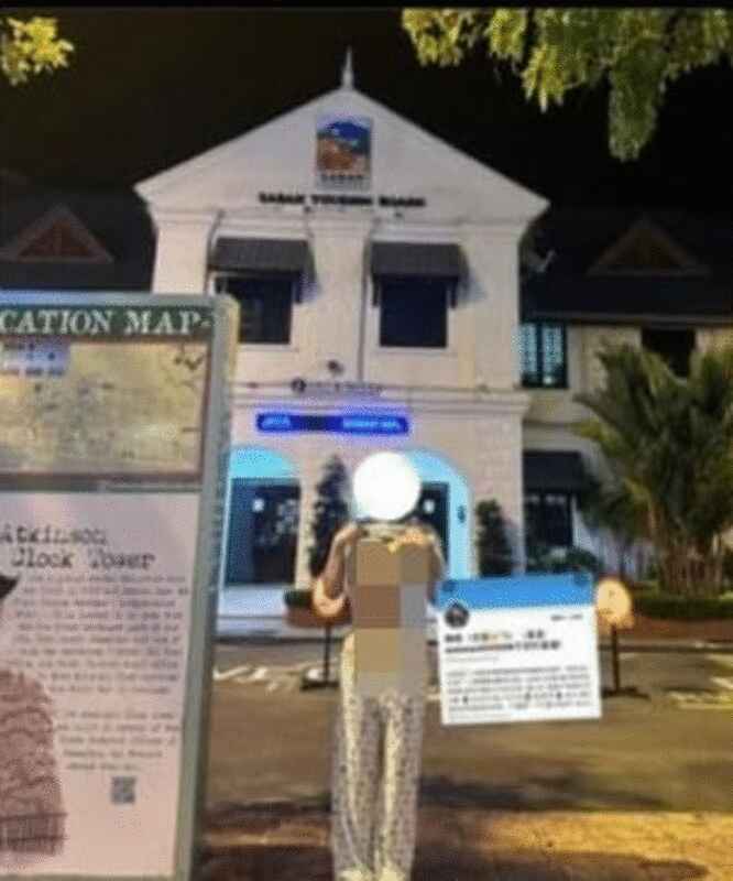 另外两张照片则显示一名女子大白天身穿“内衣裤”,拉着行李箱在加雅街一带的公共场所出现。