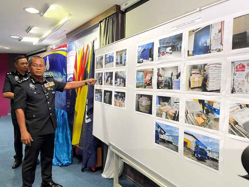 他说,起获肉品总数为9万8342盒,市值1961万1620令吉,加上被扣押的4辆罗里、7架起重机、电脑等物件,合计约值2046万1120令吉。