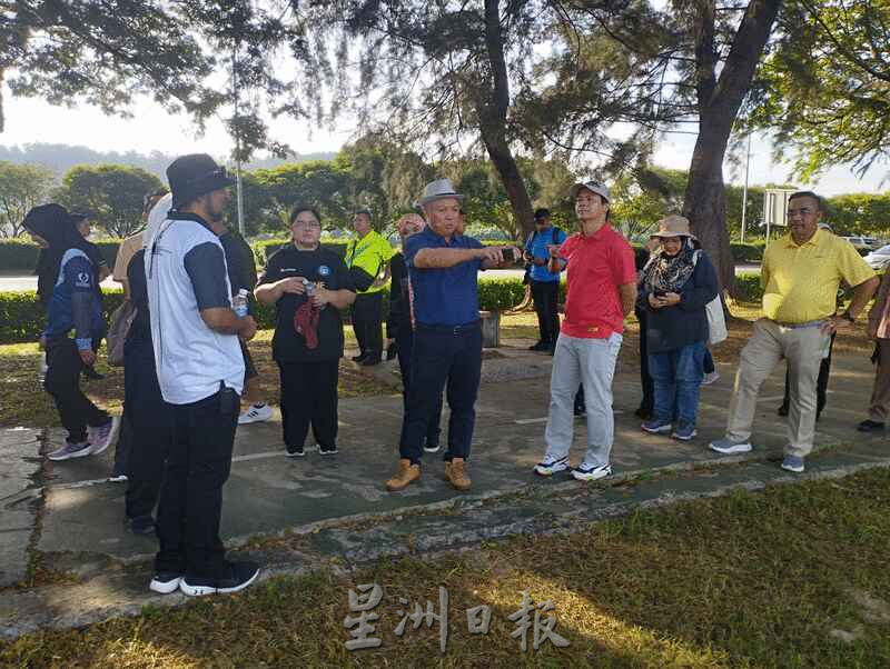 沙宾今早在市政厅官员的陪同下,从里卡士湾公园进口处步行至安绒柏达纳小贩中心,全程步行近两小时视察公园环境及各项设施,包括公厕,垃圾处理中心、海滩、人行步道、脚车骑行道、休闲设施及小贩中心。