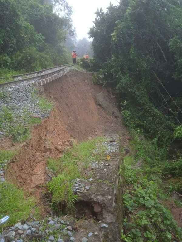 沙巴铁道局发出通告指出,土崩事故发生在保佛至拉尤站之间102.9公里处,令轨道无法安全行驶。