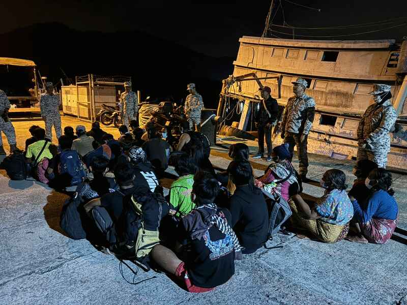 (亚庇21日讯)大马海事执法机构执法人员昨日在亚庇海域扣留1艘疑载人蛇入境的渔船,逮捕28名偷渡客。