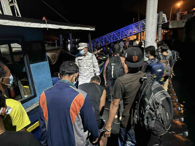 大马海事机构执法人员把舵手、船客及渔船押送到实邦加海事码头展开进一步调查。