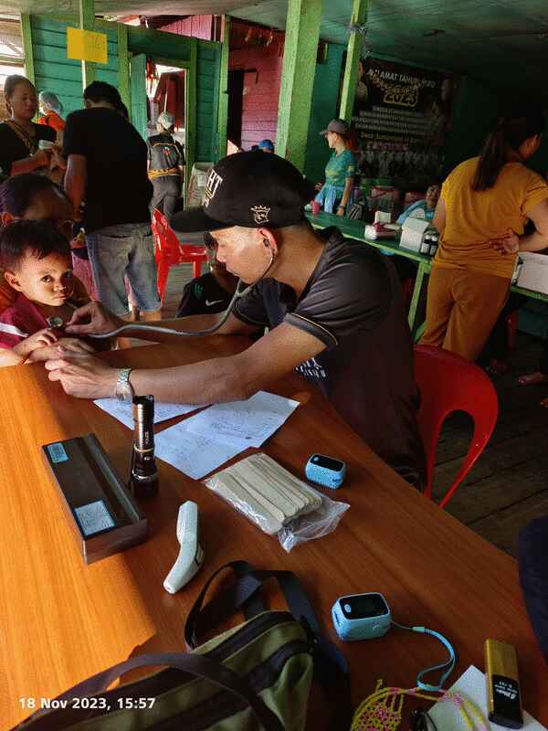 这次的服务范围是甘榜巴巴利丹和巴杜。参与者抵达甘榜沙隆后,乘坐1小时的船前往巴巴利丹,抵达后获得村长孙基亚沙万及村民们的热烈欢迎。