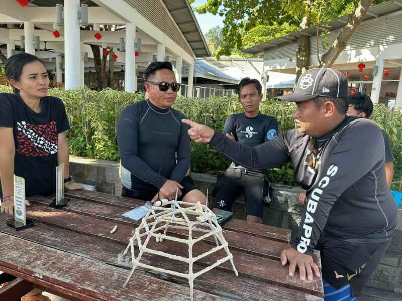 儘管当天海面波涛汹涌,13名潜水员依然按照原定计划,在苏禄岛一带水域将珊瑚碎片绑在10个支架上。