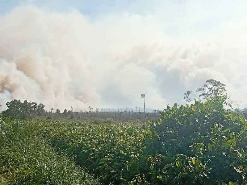 (保佛1日讯))距离沙巴首府亚庇市约100公里的瓜拉班尤县3座甘榜附近的林地因天气炎热发生了大火,火势骇人并迅速蔓延,造成1490英亩的林地被烧毁。
