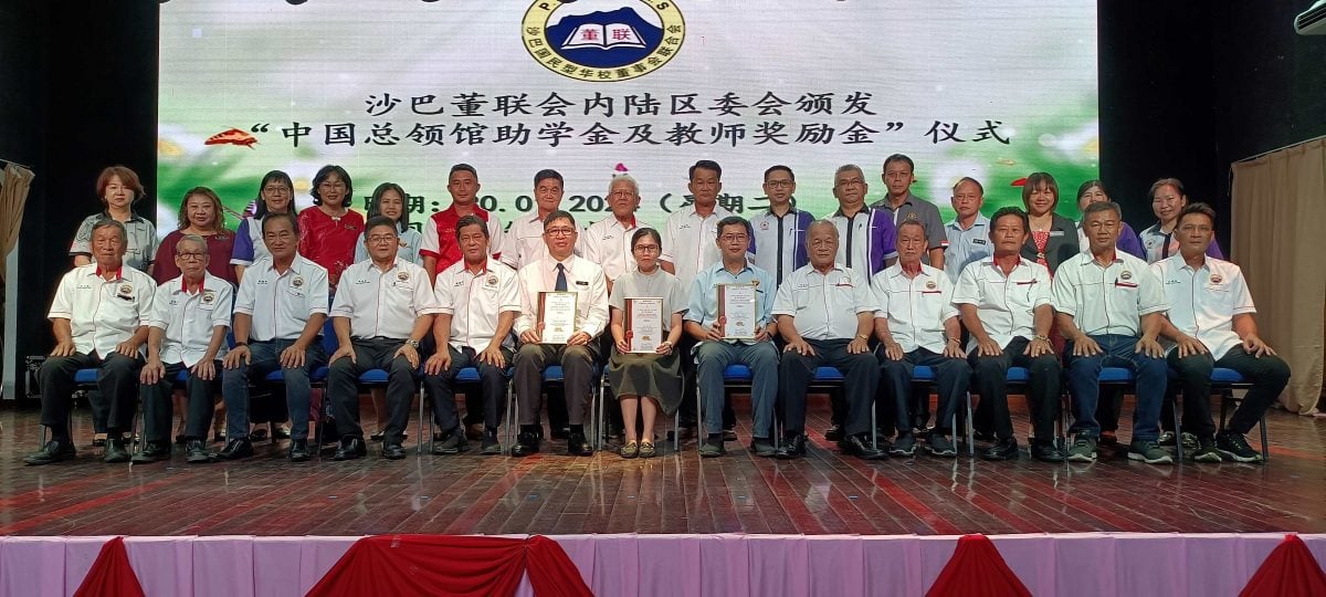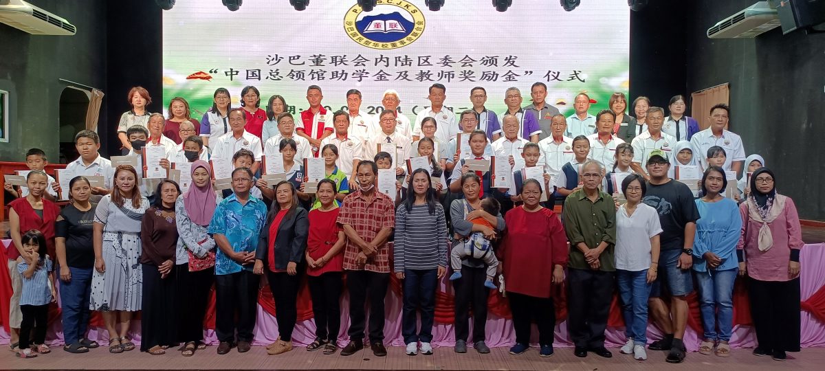 由中国驻亚庇领事馆为内陆区华校学生所提供的贫困学生助学金,在沙巴董联会内陆委员会所协助安排下日前在丹南中华小学礼堂举行。