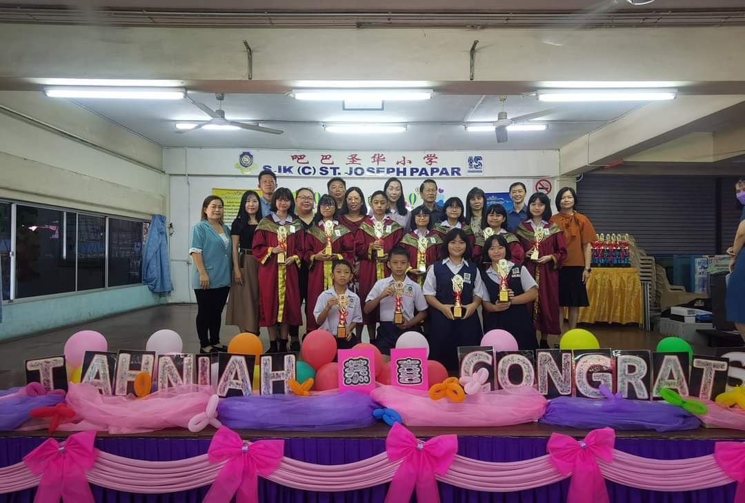 (吧巴1日讯)吧巴圣华小学于日前举行“成长足蹟,梦想啟航”毕业暨颁奖典礼,63名小六生领取毕业证书。