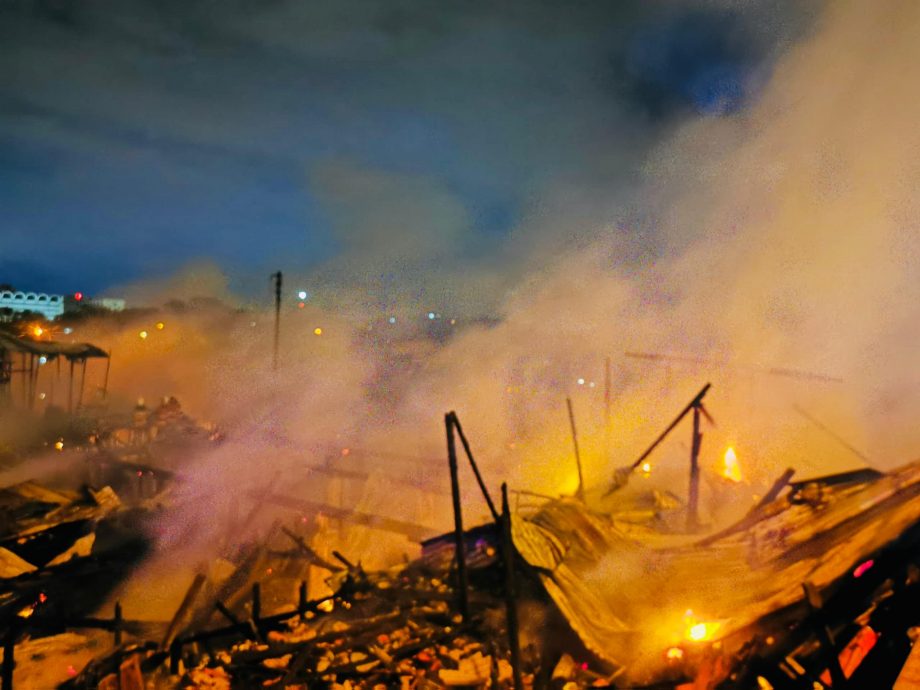 (亚庇2日讯)甘榜新布兰登雅(Kg Sembulan Tengah)水上木屋区週五(2日)凌晨发生火灾,4间屋子在短时间内付之一炬,居民在睡梦中被惊醒后赶紧逃命,所幸没有造成伤亡。